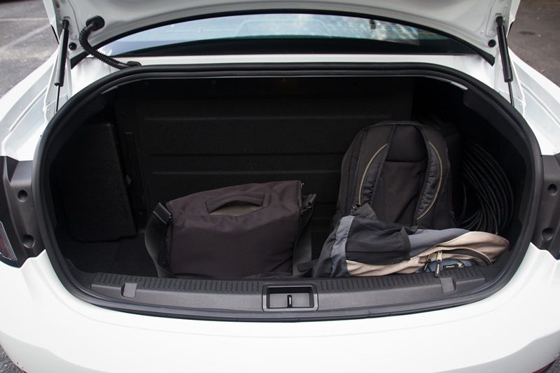 Cabin space is decent; it swallowed four adults with plenty of legroom both front and back. The dashboard looks almost conventional and houses the speedometer, battery power gauge, and level of charge. Although the battery pack is stacked vertically behind the rear seats, boot space is compromised – one camera and two laptop bags, and it was already getting crowded in the back.