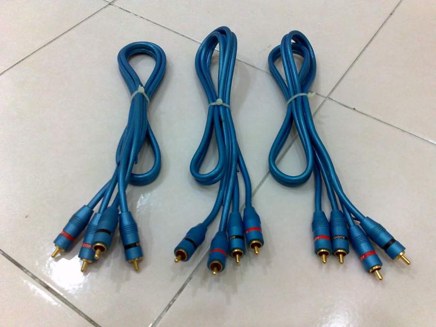 A set of LIKE NEW3pcsAudio Focus (3ft each) gold-plated interconnect RCA cables for your car audio system.