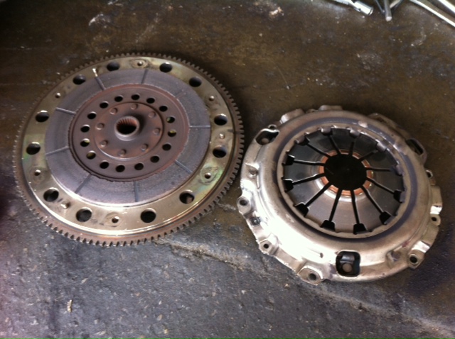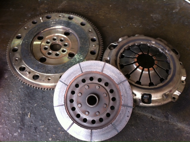 oem flywheel, oem pressure plate and racing clutch plate/pad.
