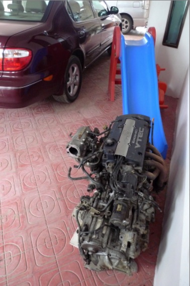You fitting a F20b or H22a ? U got such a beautiful large garage there ! Hehhehee..