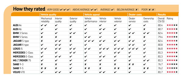 found out more reliable than 3 series, c-class, 5 series and e-class