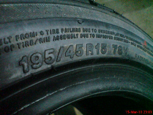 i have a set of yokohama A539 tyres 99.9% new with a rare size of 195/45/15 suitable for lightweight car such as satria, myvi, ek9, etc. condition new cos purchase wrong size. tyres are made in japan. Date manufactured is 2003 but i've kept them in my dads warehouse which have aircond 24hours so the tyres never exposed to high temperature. now need to sell cos my dad bising already. pls call/sms.